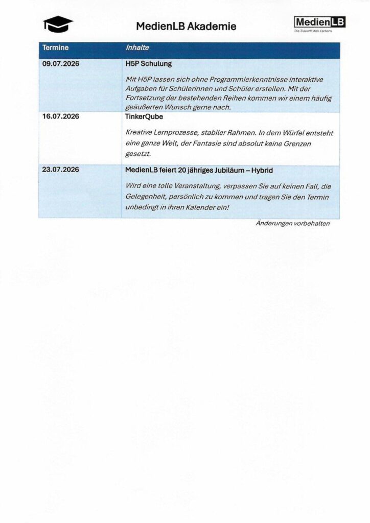 Veranstaltungen im Lernraum der Zukunft: